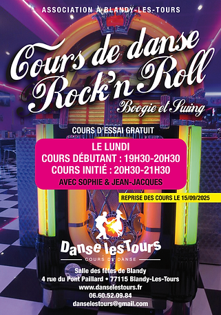 Nous avons le plaisir d'ouvrir deux niveaux de cours de Rock-boogie-swing le lundi à partir du 15 septembre 2025 à Blandy les Tours avec Jean-Jacques et Sophie.